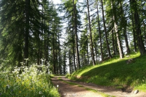 Cette boucle qui vous conduit à la cabane de l'Aiguille vous amène à traverser une belle forêt de mélèzes, qu'on appelle un mélèzin. Le sous-bois de ces forêts est très caractéristique puisqu'il est recouvert d'une moquette d'aiguilles d'une grande richesse pour la biodiversité. Ce couvert forestier vous apporte également un ombrage salutaire.
