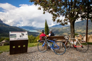 Une boucle tout en douceur ! Les rives paisibles de la Durance laissent place à un relief plus vallonné et une ouverture sur les massifs de l’Embrunais et les eaux turquoises du lac.De l’église, prendre la rue qui descend afin de rejoindre la D994d. Partir ensuite à gauche en direction d’Embrun. Faire 4 km et, au STOP, prendre à droite et enjamber la Durance en empruntant un pont métallique (plancher bois) vers Embrun. Rapidement, prendre à gauche et suivre la route de la Digue, interdite aux véhicules.La route longe la rivière et permet d’observer la citadelle d’Embrun. Atteindre une passerelle et passer à nouveau au-dessus de la Durance. Suivre la piste cyclable en direction de Baratier (court passage sous la N94) et filer vers un rond-point.Prendre la troisième sortie en direction des Orres (D40) et grimper durant 4 km avant d’arriver à une bifurcation. Partir maintenant à gauche en empruntant la D39a vers Saint-Sauveur. On profitera de belles vues sur le lac tout en pédalant. Une fois à Saint-Sauveur, effectuer un petit arrêt afin d’observer le panorama, que l’on qualifiera de grandiose.Poursuivre sur cette route en balcon durant 4 km, pour rejoindre la D39 au niveau d’un virage en épingle. Prendre à gauche, dans la direction de Saint-André-d’Embrun pour retourner au point de départ.