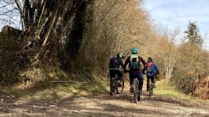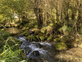 12,500 km - Au carrefour poursuivez en face jusqu'au hameau de "Bataille". Dans le hameau, tournez à gauche en face de la fontaine, puis traversez le Rieu-Majou pour suivre un large chemin qui descend jusqu'au hameau de "Peyreu".