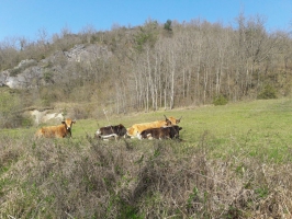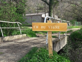 ETAPE 4 - Le chemin descend et finit par rejoindre une petite route goudronnée. La suivre à droite, le long du ruisseau de Vaquemorte.