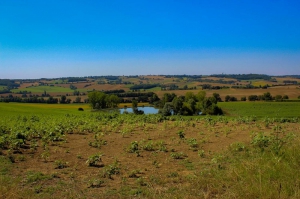 Etape 2 - Au mât "Bois de Galembrun", tourner à droite sur la D47 pendant environ 300m. Après le petit pont, prendre le chemin de terre sur la gauche. Vue à gauche sur Galembrun. Continuer toujours tout droit sur ce chemin jusqu’à rejoindre à nouveau la D47. Tourner à gauche sur la D47 et rejoindre Drudas et le point de départ.