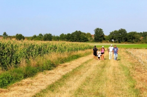 Etape 4 - A l’intersection avec le chemin de Jordi (balise), tourner à droite sur 2,5 km. Au mât de la Pleysse, continuer tout droit. Au mât de la Brosse, tourner à droite sur une petite côte. Au calvaire, tourner à droite et longer l'allée d'arbres. A hauteur du cimetière tourner à droite vers la D.58.Au carrefour, prendre à droite en direction de la halle puis retour à la salle polyvalente à droite.