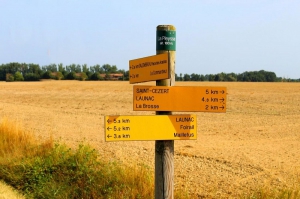 Etape 2 - Au mât, prendre à droite chemin des litanies.Au silo tourner à gauche sur la route.120 m environ après, prendre le chemin goudronné à droite vers le Coucassayre.2 km après prendre la route à droite aux cyprès. Chemin de terre durant 0,5 km.
