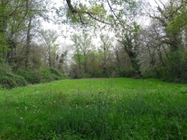 ETAPE 5 - Au bout de ce côté du plan d'eau, traverser (prudence) et s'engager sur le chemin en face. Monter en suivant la clôture grillagée (laisser à droite le chemin qui part vers la propriété). Tourner à l'angle de la clôture et continuer le chemin herbeux bordé par les plantations d'eucalyptus. Il conduit tout droit à la "Voie romaine sud".