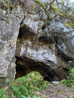 8 - Poursuivre le chemin. Sur votre gauche (paroi rocheuse au fond à gauche) la grotte de Laspugues. Vous pouvez y faire un arrêt.