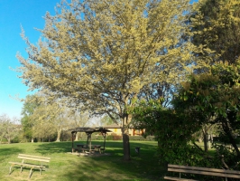 ETAPE 2 - En sortant du Parc du Couloumé, côté pigeonnier, prendre en face, puis passer devant la maison de retraite, l'EPADH du Couloumé. Rejoindre la départementale D40b. Puis prendre à gaucher et à 20m, tourner à droite après la croix de mission.