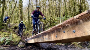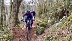 Piste VTT enduro noire - Circuit officiel Cagire Garonne Salat Itinéraire enduro à profil de descente alternant flow en forêt, zone technique sur sol rocheux, virages relevés artificiels et naturels, franchissements. Single tracksPossibilité de réaliser deux parcours différents au cours de la descente (2 variantes).