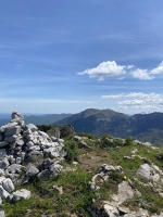 6 - Vous poursuivez en direction du Pic Saillant que vous apercevez avec sa croix. Vous arrivez au niveau d'un col. Sur votre droite le Pic Saillant, sur votre gauche le Pic du Gar.