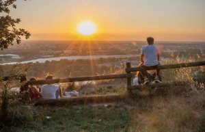 6 - Tourner à droite, couper la route et suivre le chemin du Manel. Il devient herbeux et descend dans le bois (attention : sentier glissant par temps de pluie !). En bas, parcourir à gauche le bas- côté, traverser la route et gravir en face la piste à flanc. En haut, tourner à gauche sur le chemin de Cluzel, utiliser le sentier au bord de la prairie et, aux gros rochers, reprendre le chemin goudronné jusqu’à l’oppidum de Cluzel (belle la vue sur Toulouse, l’Oncopôle et la Garonne).