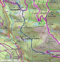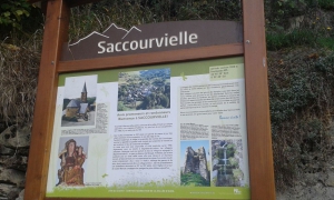 4 - Continuez le sentier jusqu’au village de Saccourvielle, prenez à gauche, vous retrouver le balisage jaune et rouge du GRPays Oueil-Larboust provenant de droite.