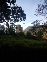 4 - Plus loin, vous verrez un panneau sur un chêne indiquant "Chapelle d'Esputs", le chemin devient plus raide et montant fortement vers la droite. Vous apercevez le village d'Estenos, et passez devant la source.