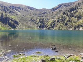 2 - Vous continuez à suivre la piste jusqu'au Port de Pierrefitte (1855m). Vous pourrez voir là, des cromlechs. Le sentier descend alors en direction du lac de Bordères (1766m) que vous avez en point de vue. Une pause au bord de l'eau sera salvatrice. Attention, il y a peu d’arbres !