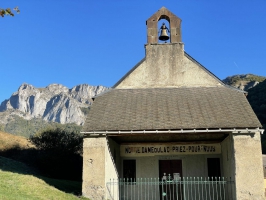 5 - Vous arrivez à la belle chapelle du Lac - là, prenez la rue descendante sur votre droite. Vous rejoignez la route départementale montant au col de Mente que vous suivez sur la droite pendant 50m.