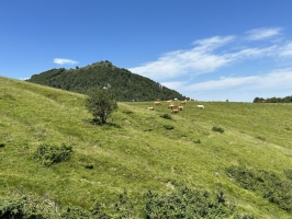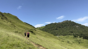 6 - Vous quittez la forêt et descendez sur un petit sentier sur le flanc droit d’un mamelon. Vous descendez jusqu’à un col. Montez sur votre droite.