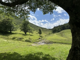 3 - Vous arrivez au passage de bétail en acier, continuez tout droit en traversant le ruisseau puis par la piste qui longe le ruisseau. Vous arrivez à la cabane de Roquepi.