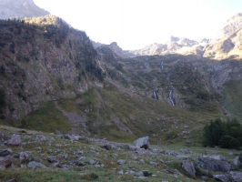 4 - Vous sortez de la forêt (1570m) pour admirer le cirque et ses cascades. Saurez-vous trouver la cabane ?