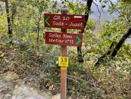 1 - Se garer sur le parking de la mairie de Salles, prenez à droite vers le centre du village puis vous tournez à gauche en direction de Sode (panneau 13).
