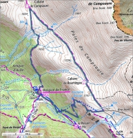 Départ devant l'auberge de l'Hospice de France, suivez la piste large en direction de la cabane de Pesson et plateau de Campsaure. A l'embranchement avec Fontaine rouge, prenez à gauche et suivez le chemin qui monte jusqu'au plateau. Arrivé au plateau, prenez à gauche vers la cabane, puis tournez à gauche pour descendre par le chemin des chèvres.