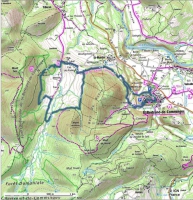 5 - Après 300 m, au croisement avec la piste forestière, prenez en face la piste descendante. Au croisement d’une route goudronnée, prenez celle de gauche puis un peu plus loin, traversez le pont métallique.Prenez le chemin souvent un peu boueux à droite, direction « Gouffre de Lespugue ».
