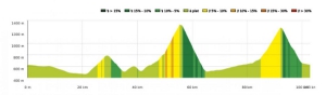 Il s'agit là d'un des premiers circuits proposés lors de la cyclosportive "la Lapébie". Sont au programme 1 col de 2èmme catégorie puis 2 cols de 1ère catégorie : col des Ares (% moyen 3,9 - % maxi 11), col de Menté (% moyen 6,6 - % maxi 11,4) et col de Portillon (% moyen 6,8 - % maxi 8,2).