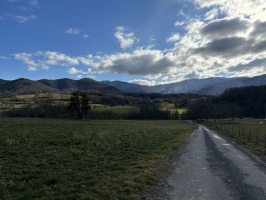 10 - Dans le hameaux Les Gaouats, prendre le petit sentier sur votre gauche. Vous arrivez à proximité d’un cours d’eau. Traversez le cours d’eau. Vous arrivez sur la route départementale D60, prenez à droite en direction du hameau Noustens, puis au carrefour suivant à droite.