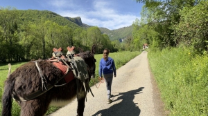 Randonner avec un âne, c'est pratique et amusant !Votre compagnon de route vous allègera au cours de balades dans les Pyrénées centrales. Vos enfants pourront monter sur le bât pour découvrir le Comminges au rythme des ânes !Céline et Nicolas vous proposent différentes formules de randonnée avec un âne de bât pour découvrir les Pyrénées; des randonnées en liberté, accompagnées, ou adaptées au public à mobilité réduite.Situés entre le piémont pyrénéen et la haute chaîne, à cheval entre les Parcs Naturels Régionaux des Pyrénées Ariégeoises et des Comminges Barousse Pyrénées, loin des grandes affluences touristiques, laissez vous portez par le calme et la douceur de nos montagnes. Depuis des décennies, l’élevage a façonné ce territoire pour donner ce paysage de bocage, parsemé de petits villages pittoresques, dominé par de grandes et profondes forêts et en toile de fonds les hauts sommets. C’est une région encore méconnue et préservée du tourisme de masse, authentique et mystérieuse, l’endroit idéal pour vos randonnées en famille, autant pour l’accessibilité, que pour la qualité de ces paysages.Ils utilisent des ânes issus de leur élevage, pour des randonnées allant d’une journée à plusieurs jours. Nos ânes de randonnée sont avant tout des compagnons de route pour vous soulager du poids de vos sacs à dos. Si les enfants montent sur les ânes, c’est sous l’entière responsabilité de leurs parents en respectant l’âge à partir de 4 ans et maximum 7 ans et 30 kg max ainsi que le port d’une bombe ou d’un casque. De plus, les enfants devront descendre de l’âne et marcher dans les passages délicats.Labellisé :> Adhérent à la fédération « Ânes et Randonnée »,> Professionnel utilisant uniquement des « Ânes des Pyrénées« ,> Structure de randonnée : Label ÉNERGIE ANIMALE« PORTAGE »> Certifié Haut Valeur EnvironnementaleAnimaux : les chiens ne sont pas acceptés à la ferme et autorisés en montagne sous condition d’être tenue en laisse.Sur place (sur réservation) : Hébergement en yourte, table d’hôtes, vente de boissons, espace ombragé en bord de rivière.Bien noté : Nous limitons le chargement de l’âne à 30 kg.Les enfants à partir de 4 ans peuvent monter sur le bât de l’âne sous la responsabilité des parents ainsi que le port d’une bombe ou d’un casque et en fonction des formules choisis. De plus, les enfants devront descendre de l’âne et marcher dans les passages délicats.Les formules proposées par la Feme d’Oulan Bat :Nos randonnées libertés avec un âne :Rando découverte :Du 30 avril au 20 août 2025.Si vous êtes de passage dans la région ou en vacances à la ferme d’Oulan Bât, à la recherche d’une activité nature à partager en famille; venez découvrir la randonnée journée accompagnée d’un âne de bât. Compagnon idéal pour vos sorties nature, il vous soulagera du poids de vos sacs à dos et deviendra un véritable partenaire de route pour vos enfants…•Itinéraires : 7 circuits au choix,•Niveau : Marcheur, à partir de 4 ans,•Durée : 3 à 5 heures en fonction du circuit.A partir de 65€/ âne (nous vous conseillions un âne par famille)Séjour étoile :Juillet – août uniquement.7 itinéraires au choixUn séjour mêlant confort et randonnée; vous séjournez dans une des 3 yourtes du camp en demi-pension et vous randonnez chaque jour avec votre âne. En plus de vos escapades nature, vous aureztout le loisir et la liberté de vous occuper de votre âne (le brosser, le nourrir). Cette formule est particulièrement adaptée aux familles avec de jeunes enfants…•Niveau : Marcheur, à partir de 4 ans,•Jour d’arrivée :Tous les lundis,•Durée : 4 jours / 5 nuits, •1 journée de formation, •3 jours de rando-âne.A partir de 505€ Séjours «p’tits trappeurs» :Juillet – août uniquement.Un séjour adapté aux familles aventureuses avec de jeunes enfants. L’objectif est de vous préparer aux 2 jours de randonnée itinérante et à la nuit en bivouac. Au programme : Initiation à larandonnée avec un âne, nuits en yourte, bivouac en montagne, repas au feu de bois…• Niveau : Marcheur, à partir de 6 ans,•Jour d’arrivée : Tous les lundis,•Durée : 4 jours / 5 nuits, •1 journée de formation, •1 journée de rando-âne, •2 journées de rando-âne avec un bivouac.A partir de 480€ Séjour itinérance bivouac :Juillet – août uniquementUn séjour pour découvrir et expérimenter la randonnée itinérante avec un âne. Pour que cette aventure soit un vrai plaisir pour vous et se déroule en toute sécurité, nous prévoyons 1 journée de formation (soins des ânes, utilisation du matériel de portage, lecture de carte, …) et une journée de randonnée pour vous familiariser avec votre âne.• Niveau : Randonneur, à partir de 8 ans,• Jour d’arrivée : Tous les lundis,•Durée : 6 jours / 6 nuits, •1 journée de formation, •1 journée de rando-âne, •4 journées de rando-âne en itinérance bivouac et en autonomie.A partir de 320€?Nos randonnées « accompagnées » :Expédition au Pays de l’Ours :Deux séjours par anUn séjour unique et exceptionnelle. Nous organisons deux fois par an un séjour naturaliste sur le thème de l’ours et de la grande faune pyrénéenne. Durant 5 jours nous progressons au cœur de la zone à ours des Pyrénées Centrales pour prospecter et relever des indices de présence. Accompagné d’un accompagnateur naturaliste, d’un ânier et de ses ânes, vous aurez le privilège de parcourir ces montagnes sauvages et encore préservées…•Niveau : Randonneur, à partir de 10 ans,• Période : • Du lundi 3 juillet au samedi 8 juillet 2023 • Du lundi 11 septembre au samedi 16 septembre 2023• Durée : 5 jours/5 nuits,A partir de 720€ Nos randonnées adaptéesRando en escargoline :Toute l’annéeGrâce à l’escargoline, nous proposons des sorties en toute