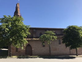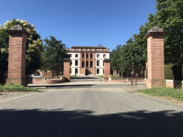 6 - Tourner à droite et emprunter le chemin enherbé sur 500m, puis bifurquer à gauche. Longer le collège et suivre la route qui tourne à droite jusqu'au rond-point. Suivre la direction de Baziège. Passer devant un ancien château (en briques, caractéristique de l'architecture du XVII° siècle, avec deux tours en encorbellement) et prendre la 2° rue à gauche, chemin de Toulouse, pour rejoindre le point de départ.