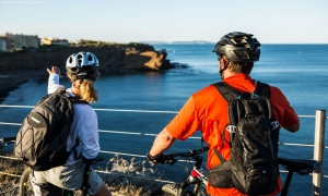L’aboutissement de l’itinéraire de la GTMC offre de belles surprises : tout en douceur, l’itinéraire se poursuit entre chemins de vignes, petites routes et pistes cyclables. Vous aurez tout le loisir de profiter des paysages de vignes, de la cité d’Agde traversée par le Canal du Midi… avant de rejoindre la grande bleue sur l’unique côte volcanique du littoral languedocien.Après un bout de route un peu monotone entre Pézenas et Montagnac, le tracé est ludique et esthétique de Montagnac à Castelnau-de-Guers : l’itinéraire alterne entre pistes roulantes et sentiers ludiques, parfois techniques. Après le domaine départemental de Bessilles, vous évitez un passage technique au niveau du « Trou du Renard » en passant par la route.Vous roulez ensuite sur de beaux sentiers entre pinèdes et vignobles avec vues sur l’étang de Thau et la mer. La GTMC emprunte une partie du parcours "Terroir d’Art et de Nature de Montagnac" jalonné de sculptures et statues.La fin de l’itinéraire est facile au travers des vignes avec des passages sur route, bords du canal du midi et du fleuve Hérault autour d’Agde. La station du Cap d’Agde est vite traversée par des pistes cyclables, pour aboutir au véritable ‘cap’ surplombant les plages de Grande Conque et de la Plagette.68 km / +500m / -505m