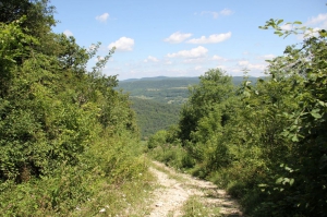 "Les Justices", emplacement de sinistre mémoire où pendant le moyen-âge étailt installés les bois de Justice.Panorama sur la Bresse. Accès pédestre, depuis Rosy, Treffort ou Cuisiat.