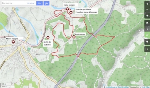 Traverser à nouveau l’autoroute, et de l’autre côté du pont, tourner à gauche sur la petite route. Laquitter pour prendre le premier chemin à droite. A l’intersection avec la route prendre à droite, puisà gauche direction « Parouty ». Quitter la route pour le premier chemin à gauche. Continuer jusqu’àretrouver la route. Prendre à droite, puis continuer tout droit, jusqu’à un virage à gauche avecun sens interdit en face. Prendre le sens interdit, descendre les escaliers, et arriver à l’église.