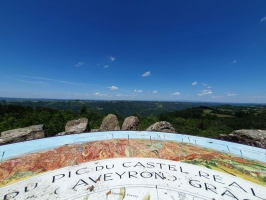 Castel, château en Occitan. Autrefois emplacement d'un château fort, qui fut une des résidences préférées des Comtes de Rodez, aujourd'hui le Pic du Castel est un magnifique point de vue sur les alentours : le château de Valon, les Monts d'Aubrac, les Monts du Cantal ... une table d'orientation vous permettra de vous situer !