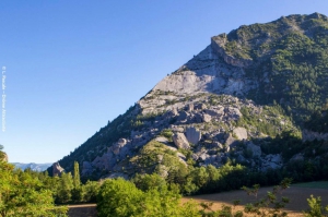 Après la montée entre forêt de pins et marnes pour atteindre la cabanette suspendue au-dessus de Luc-en-Diois on s’engage si on a le pied montagnard dans l’ascension du pic de Luc dominant la dalle sommitale de l’éboulis gargantuesque du Claps.