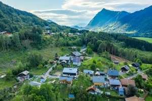 Redescendre ensuite en direction de la route départementale, traverser la route départementale pour rejoindre le sentier Au Fil du Giffre, poursuivre jusqu’au Lac Bleu puis jusqu’au centre du village poursuivre jusqu’au départ de la Télécabine