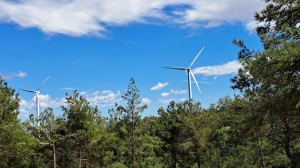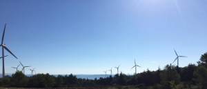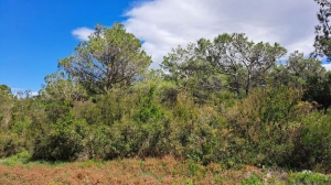 Après 350m, prendre la piste à gauche en suivant le panneau « éolienne » puis après 50m, quitter la piste et emprunter un petit sentier qui monte à gauche sous les pins.