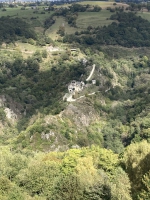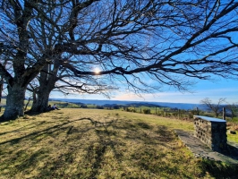 La vue à 360°C embrasse les vieux volcans du Cantal, l'Aubrac, les pas sont guidés par de nombreux arbres remarquables vers Bes-Bédène que l'on aperçoit de l'autre côté des gorges de la Selves.