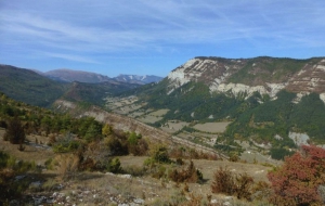 Depuis le hameau de Montblanc, suivre la route goudronnée vers l'est à la descente sur 1,3 km. Peu après une croix en bois, au niveau d'une petite maison et d'un petit pont, déboucher sur un croisement.Aux Cognas, quittez la route et tournez à droite pour franchir le pont sur la Chalvagne et montez en face dans la pinède. Le sentier s'élève dans la forêt, débouche sur une crête qu'il suit un moment et passe sur un collet. Passé ce point, prendre le chemin sur la gauche au bord de la pente, gagner une croupe, puis pénétrez dans le bois après une courbe à gauche. Le sentier monte alors régulièrement jusqu'à une piste à proximité du col du Buis.Au niveau du col du Buis, empruntez la piste à droite en montée, franchir une barrière et poursuivre sur l'autre versant jusqu'au terminus de la piste, 2,5 km plus loin. Continuez en face sur un sentier qui descend jusqu'à un carrefour, à hauteur d'une ruine.Au niveau de Serre Mallet, descendre à droite jusqu'au fond du ravin, le franchir, gravir l'autre versant, passez une crête et descendre jusqu'à un autre ravin. Le traverser pour longer une prairie et débouchez sur une route goudronnée. La suivre à droite à la descente jusqu'au point de départ.