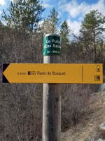 Traverser le pont du Ravin de Bouquet et et prendre le sentier qui part de suite après sur la droite pour s’élever dans la forêt domaniale des 3 Asses. Ce sentier, balisé en jaune s'élève sur environ 600 m de distance vers le nord , et 40 m de dénivelé. Il débouche sur le puits d'eau salé et sa fontaine. Le retour se fait par le même itinéraire.Il est intéressant de noter que la salinité de ces petites nappes souterraines s'explique par les formations géologiques qu'elles occupent : il s'agit de roches salines datées du Trias, c'est à dire -250 millions d'années avant J.C.