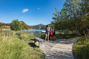 Depuis l'office de Tourisme, aller vers le bar de Provence et prendre l'avenue de la Gare vers la gauche pour s'enfoncer dans le centre de Saint-André. Au bout de la rue, tourner à droite et aller tout droit sur 500 mètres environ. Au rond-point, continuer tout droit pendant quelques centaines de mètres sur la route principale (Route de Grenoble). Une fois arrivé au U Express, tourner à gauche et marcher tout droit sur 50 mètres. Prendre la route qui longe le stade de football sur la droite jusqu'au grand parking, le départ du Sentier des pêcheurs est sur votre droite en direction du lac.La première partie du sentier est accessible aux personnes à mobilité réduite.