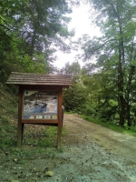 Depuis la place, emprunter la rue de la Parra sur quelques mètres puis le sentier à gauche. Arrivé à la balise "Route du Clot", prendre à droite la route qui part à travers champs et dessert quelques maisons. Avant la fin de la route, bifurquez à droite entre deux maisons. Suivre ce sentier en lacets dans une belle forêt de châtaigniers jusqu'au pont de Gassigné qui enjambe le Coulomp. Passer le pont et prendre à gauche. La petite retenue alimente une usine hydroélectrique, la baignade est strictement interdite. Descendre la piste d'abord en rive droite puis en rive gauche du Coulomp. Arrivé au pont du Gay, remonter le ravin de la Lare en direction d'une carrière d'exploitation, on emprunte alors la RD 110. Prendre sur la gauche le large sentier de la "Porte de la Chataigneraie", remarquable par son porche d'entrée réalisé en grès. Remonter cette piste jusqu'au village.Attention : les châtaigneraies sont des propriétés privées, toute récolte (châtaignes, champignons…) est interdite.