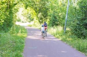 Traversez le boulevard puis les lotissements en suivant la piste cyclable jusqu'au prochain espace vert.