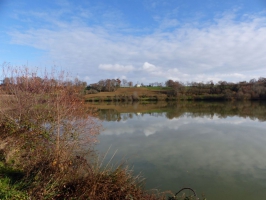 Rive droite, le chemin longe un coteau boisé. Une passerelle enjambe la pointe amont du lac, zone d’observation des oiseaux et de quiétude. La rive gauche est bordée par des champs. Elle est sans dénivelée. Nombreux bancs répartis dans cette section.