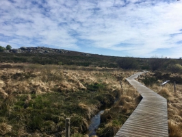 Tourbières : passage sur une passerelle au milieu des tourbières.Continuer la traversée en suivant le balisage GR.
