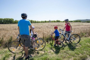Ou comment, au guidon de son vélo, fureter entre terres agricoles, savourer les produits du terroir et dénicher les savoir-faire…De la Place de la Vieille Fontaine, s’engager à gauche sur la petite route du quartier Le Grand Pibaraud (suivre le balisage "Le Pays d’Aigues à vélo"). Prendre à droite à l’Y, et 370 m plus loin, bifurquer à droite au Chemin de l’Abouaud Brinde. Déboucher plus loin sur la D37.1- Emprunter à gauche la D37 en direction de l’Étang de la Bonde. Virer à gauche (D9) puis à droite (D27). Passer l’entrée de l’étang et 500 m plus loin, bifurquer à droite (D37). Virer à gauche Chemins des Escabots et continuer à droite (D120).2- Virer à gauche (D165) pour rejoindre Saint-Martin-de-la-Brasque. À l’Y, virer à gauche. À l’entrée du village, traverser l’allée des platanes à droite. Virer à gauche sur le cours du Mont Libre et déboucher sur la D27.3- Emprunter à gauche la D27 jusqu’à la Motte-d’Aigues (suivre le balisage "Autour du Luberon à vélo"). Traverser le village et aller jusqu’au stade. Virer à droite en direction de Cabrières-d’Aigues (D120). Poursuivre tout droit au croisement, passer un gros virage, puis descendre au rond-point situé à l’entrée de Cabrières-d’Aigues.4- Continuer tout droit, remonter à droite la rue du Temple et traverser le village. Emprunter la D189 jusqu’à Cucuron. Au rond-point, filer à gauche puis de suite à droite pour pénétrer dans le centre.5- À l’angle de la cave viticole Louérion, virer à gauche (suivre le balisage "Le Pays d’Aigues à vélo"). Descendre la rue du cimetière et poursuivre tout droit au rond-point. Au stop, virer à gauche (D27), puis à droite direction Ansouis. 250 m plus loin, emprunter à droite le chemin de l’Agrie. Virer à gauche sur chemin de Saint-Estève. Au niveau du lieu-dit le Long Bosquet, se faufiler entre les deux maisons à gauche et descendre la petite route.6- Prendre à droite le chemin du Praderet et filer jusqu’à la D37. Au stop, virer à gauche et rejoindre la Place de la Vieille Fontaine, située au pied du village d’Ansouis.