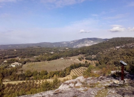 Il n'est pas rare ici de croiser des vététistes. Eux comme vous apprécient particulièrement déambuler sur les sentiers multiples de Lagnes, s'imprégner en chemin du patrimoine naturel et culturel, puis admirer les vues somptueuses comme ici sur la colline Saint-Jacques tout au loin. Alors si les piétons, cavaliers et trailers sont toujours prioritaires sur les VTT ou VTTae, je reste attentif en leur présence et courtois avec tous les autres usagers. J'adopte la Luberon attitude !
