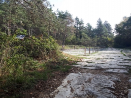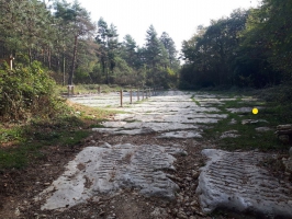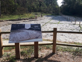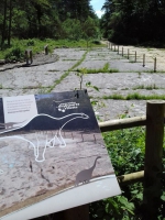 Ce site paléontologique a été découvert en 2003 et identifié comme tel en 2010. D'un grand intérêt scientifique, il témoigne du passé géologique du territoire et plonge le visiteur dans le lointain passé, au temps des herbivores géants.Ces dizaines d'empreintes sont datées de 150 millions d’années. Elles correspondent au déplacement de sauropodes, des diplodocus ou des brontosaures, c'est-à-dire de grands herbivores d’une vingtaine de tonnes. Le poids des animaux a laissé des marques notables dans la boue, comme des bourrelets de 35-40 centimètres de diamètre. Parfois, on distingue même les doigts ! Ces dinosaures étaient plantigrades à l’arrière et digitigrades à l’avant.Deux pistes parallèles remontent ainsi la plateforme sur une quarantaine de mètres. Cheminant à la recherche de nourriture, ils devaient être cinq ou six, ou peut-être davantage.Les pas laissés par ces géants nous font comprendre que la région n'était pas entièrement sous l'eau, comme on l'a longtemps cru. On comprend qu'il y avait des hauts fonds ainsi que des terres émergées ; des îles suffisamment grandes pour nourrir des troupeaux entiers.Mais comment ces traces nous sont-elles parvenues ? Des sédiments les ont recouvertes et enfoncées très profondément ; puis la tectonique des plaques a bousculé les couches, qui se sont plissées, fracturées et sont remontées à la surface. L'érosion des glaciers les ont ensuite dégagées.