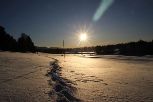 (1) Départ : Depuis l’aire de départ du domaine de la Vattay, longez les barrières en rondins jusqu’au chalet de contrôle.