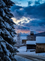 (2) Traverser le pont de Charlemagne (raquettes à la main). À la sortie du pont, monter sur la gauche en direction de l’église Saint-Christophe, visible depuis le village.