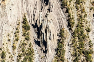 Les Cheminées de Fée également appelées demoiselles coiffées, nous rappellent la présence à cet endroit d'anciens glaciers aujourd'hui disparus : ces moraines composées de sables, graviers et blocs de roche mal cimentés ont constitué des dépôts glaciaires qui avec le temps ont subi l'érosion.Un bloc de roche dure protège le conglomérat sous-jacent, plus tendre, de l'érosion ruisselante.