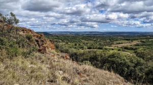 Avant le virage à droite (calvaire, jonction avec la D 174), quitter la route et monter à gauche par un chemin creux ceinturé de murs, dans les vignes. Au niveau d’une oliveraie, poursuivre la montée sous les chênes et rejoindre le plan du Céressou (207 m) ( point de vue sur la plaine viticole, le bord de mer, Agde et Sète par temps clair). Virer à gauche et poursuivre le sentier en balcon ( point de vue sur le village de Fontès). Plus loin, à gauche, amorcer la descente. Couper un sentier, descendre en face le sentier ombragé et, plus bas, continuer par une piste entre les vignes jusqu’au radier.