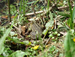 Obliquer à gauche vers le Hameau ès Mares, passer la ferme de la Planche puis bifurquer à gauche pour entrer dans le marais. Le chemin empierré devient herbeux, zigzaguer et récupérer un large chemin empierré. Le prendre à gauche et remonter la route, jusqu’à un mur à l’angle arrondi pour le passage des charrettes.